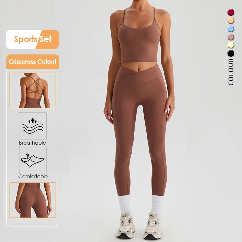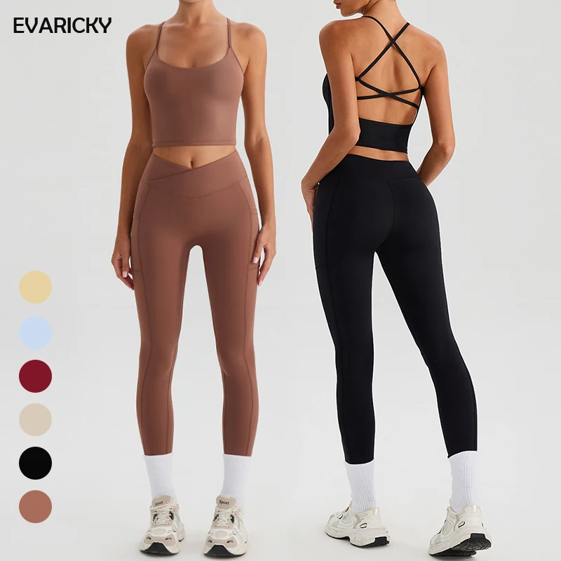 Evaricky Wholesale High Quality Yoga Tops and Pocket Leggings Set Breathable Active Wear Yoga Clothing 2 Piece Workout Set